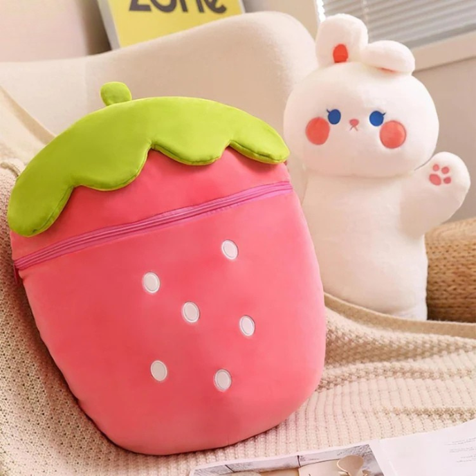 🍓Bunny can hide in the plush strawberry.