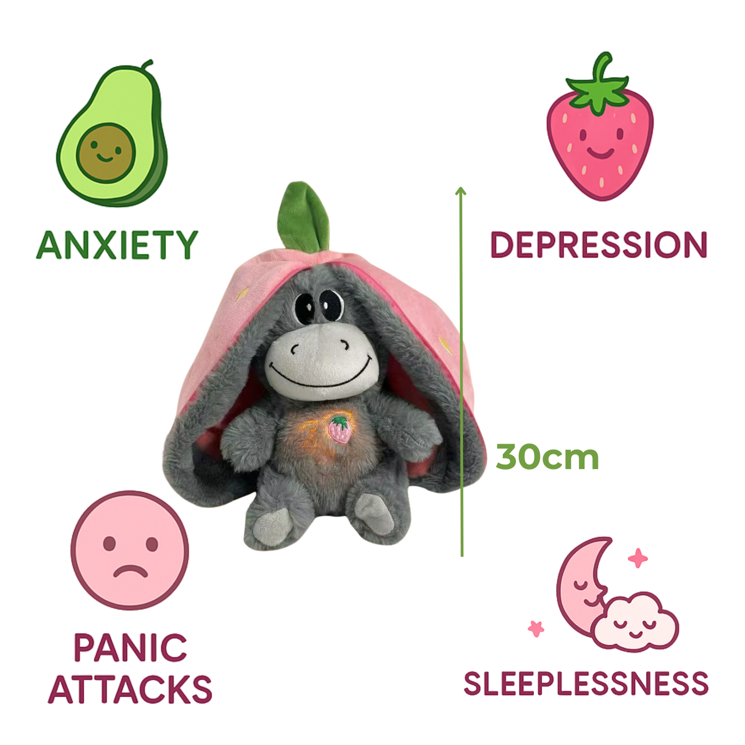 Our plush companion is there for you on heavy nights, soothing anxiety and helping you fall into a deep, peaceful sleep.